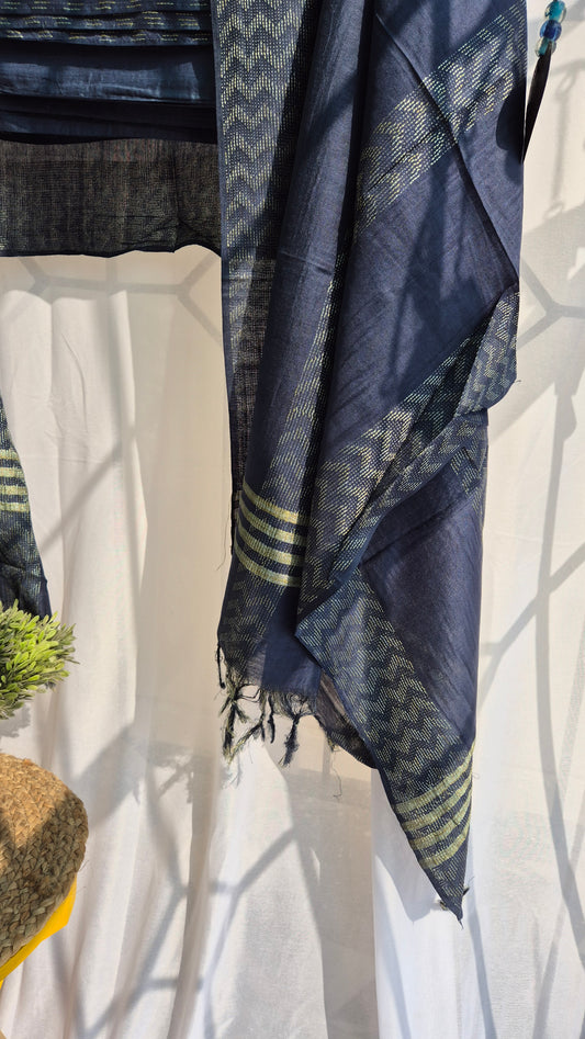 Deep Blue Bhagalpuri Muslin Handloom Suit